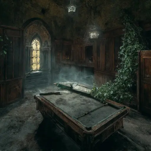 The Billiards Room, designed for evening entertainment and robust social interaction, is now steeped in an eerie stillness, its emptiness more profound than the sum of its decaying parts. Every remaining object stands as a silent witness to a life that ended in self-imposed, irreversible isolation and the endless loop of a single mistake.