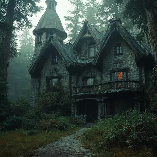 The Murmur-Eaves, a sprawling, severe structure of dark-grey fieldstone and black marble trim, was built in 1880, intended to project an image of stoic, enduring permanence, yet its heavy, deep-set eaves cast the entire façade in perpetual dusk. The name evokes the quiet, whispering of secrets (murmur) hidden beneath the roofline. To step into the main hall is to encounter a pervasive, chilling coldness and a silence so deep it seems to actively strain to prevent any sound.