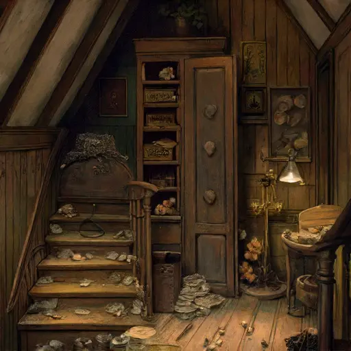 Evadne, who once managed correspondence and household routines, left her imprint through tidy sewing supplies, neatly folded linens, and recipe notes tucked into corners. Lucilla’s childhood echoes remain in scattered items: a paint-stained wooden toy horse, a half-finished sketch of a flower, and a child’s practice slate etched with looping letters.