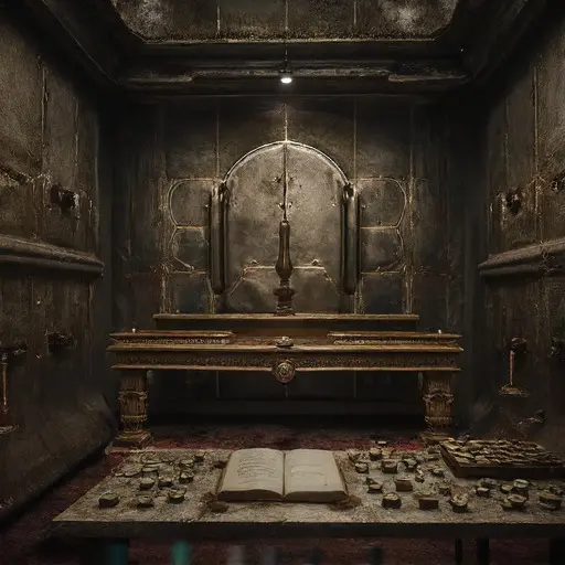 Dr. Vane’s Rectitude Vault was the engine of his obsession. Here, he worked to isolate and stabilize his final, most critical parameter: context. We found his final, detailed Ethical Compendium, bound in thick, heavily embossed leather. His entries chronicled his escalating desperation to find the “Zero-Variable Principle”—a moral law so perfect it applied equally to all beings in all situations. His notes revealed that he had begun to believe the most chaotic element was the concept of relation itself, which introduced the necessity of judging an action by its effect on others. His final project, detailed meticulously, was the creation of a massive, unique, internal “Master Law”—a final, massive sheet of pure copper upon which he would mechanically emboss his ultimate, single, perfect, unadorned, fixed moral statement: a symbol of pure, absolute self-containment.