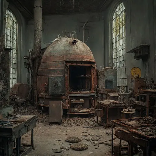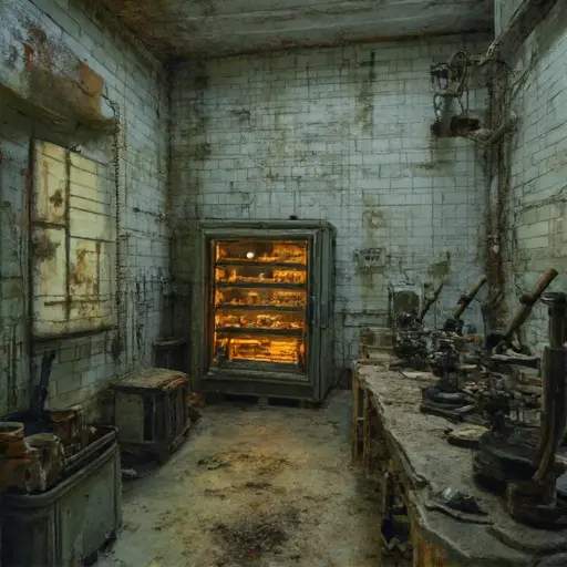 Phage-Suture Hall was an architectural statement of sterile control: a massive, symmetrical structure built of pale, smooth granite, characterized by numerous internal chambers designed to isolate airborne pathogens and stabilize chemical environments. Its name suggested a blend of virus and surgical stitching. The house stood on a remote, exposed plateau, giving it an isolated, almost monastic atmosphere. Upon entering the main bacteriology lab, the air was immediately thick, cool, and carried a potent, almost dusty scent of aged linen, chemical formaldehyde, and a sharp, metallic tang of iron. The floors were covered in heavy, smooth tiles, now slick with dust and dried culture residue, amplifying every faint sound into an unsettling echo. The silence here was not merely quiet; it was an intense, biological stillness, the profound hush that enforces the memory of a disease perfectly contained, waiting for the final, neutralizing agent. This abandoned Victorian house was a giant, sealed biosafety cabinet, designed to achieve and hold a state of absolute, unchangeable, biological purity.