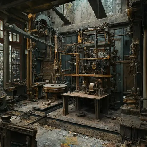 Stretto-Fracture Keep was an architectural statement of dimensional perfection: a massive, symmetrical structure built of pale, smooth granite, characterized by numerous internal chambers designed to eliminate vibration and subjective bias for concentrated study of continuous forms. Its name suggested a blend of narrowness/tightness (Stretto, often used in music to imply rapid overlap) and a sharp break/separation. The house stood on a remote, exposed plateau, giving it an isolated, almost abstract presence, dedicated to the singular pursuit of geometric truth. Upon entering the main mechanics lab, the air was immediately thick, cool, and carried a potent, mineral scent of aged metal, fine dust, and a sharp, metallic tang of iron. The floors were covered in heavy, smooth tiles, now slick with dust and grinding residue, amplifying every faint sound into an unsettling echo. The silence here was not merely quiet; it was an intense, dimensional stillness, the profound hush that enforces the memory of a shape perfectly defined, waiting for the final, unassailable continuum. This abandoned Victorian house was a giant, sealed model, designed to achieve and hold a state of absolute, unchangeable, fixed geometric perfection.