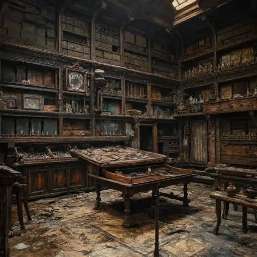 Hyle-Eidos Keep was an architectural statement of pure abstraction: a massive, symmetrical structure built of pale, smooth granite, characterized by numerous internal chambers designed to eliminate sensory distraction and subjective bias for concentrated contemplation of the Forms. Its name suggested a blend of matter/potentiality (Hyle) and form/essence (Eidos), directly referencing Aristotelian and Platonic concepts. The house stood on a remote, high, isolated mesa, giving it an atmosphere of complete intellectual detachment. Upon entering the main conceptual studio, the air was immediately thick, cool, and carried a potent, mineral scent of aged slate, dried ink, and a sharp, metallic tang of brass. The floors were covered in heavy, smooth tiles, now slick with dust and grinding residue, amplifying every faint sound into an unsettling echo. The silence here was not merely quiet; it was an intense, ontological stillness, the profound hush that enforces the memory of an Idea perfectly conceived, waiting for the final, unassailable definition. This abandoned Victorian house was a giant, sealed concept, designed to achieve and hold a state of absolute, unchangeable, fixed essence.