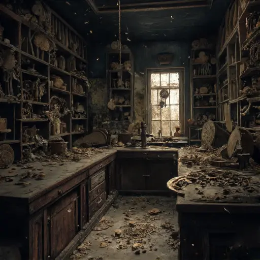 Cog-Mire House was an architectural study in complexity and disarray: a rambling, asymmetrical mansion built of dark red brick and numerous small, tightly packed rooms. Its name suggested the combination of intricate machinery and inescapable mud. The house sat low in a perpetually damp, mossy hollow, where external movement felt heavy and slow. Upon entering the main library, which served as a reception for clients, the air was immediately cold, thin, and carried a potent, almost dusty scent of old parchment, dry wood, and a sharp, metallic tang of fine oil. The floors were covered in thick, dust-laden carpet remnants that muffled all footsteps. The silence here was not natural; it was the intense, mechanical quiet that follows the abrupt failure of a thousand tiny, rhythmic parts. This abandoned Victorian house was a giant, sealed timepiece, designed to achieve and hold a state of perfect, unchangeable synchronicity.