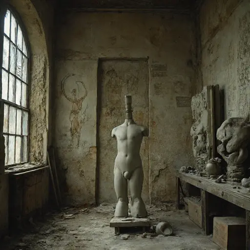 Chalk-Shroud Keep was an architectural statement of obsession with the human form: a massive, symmetrical structure built of pale, smooth limestone, characterized by its numerous large, open studio spaces. Its name suggested a blend of fine, dusty material and a concealing garment. The house stood on a rise, highly exposed to the sun, yet the interior felt unnaturally cold and sterile. Upon entering the main studio, the air was immediately cold, thin, and carried a potent, almost dusty scent of dried gypsum, clay, and a faint, acrid trace of bone powder. The floors were covered in a thick, pervasive layer of fine, white dust that muffled all footsteps. The silence here was clinical and absolute, the unnerving quiet that follows the halt of intense, focused labor. This abandoned Victorian house was a giant, sealed cast, designed to capture and hold a single, perfect mold of humanity.