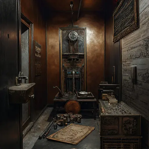 The most chilling discovery was made back in the main phrenology lab. Tucked carefully into the heavy examination chair was the Master Print. It was a massive, smooth, square copper plate, affixed firmly to the seat. The plate was covered densely with thousands of tiny, perfect, etched lines and symbols—the Master Map. Resting beside the chair was a single, small, tarnished engraving needle, its point coated in a fine, crystalline residue. Tucked beneath the chair was Dr. Vane’s final note. It revealed the tragic climax: he had successfully etched his “Master Print,” achieving the absolute, objective map of the mind he craved. However, upon reviewing the final, simple, and utterly certain pattern, he realized that a mind perfectly free of chaos and contradiction was also perfectly free of emotion, love, and complexity—the very traits that define life. He had mapped perfection, only to find it utterly hollow. His final note read: “The map is complete. The truth is fixed. But the only life of a mind is in its mystery.” His body was never found. The final imprint of Soma-Script Hall is the enduring, cold, and massive etched copper plate, a terrifying testament to an analyst who achieved psychological certainty only to find the ultimate, necessary flaw was the removal of the very essence of humanity, forever preserved within the silent, sterile stasis of the abandoned Victorian house.}