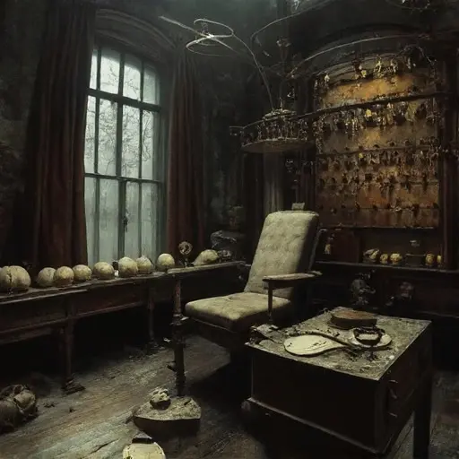 Soma-Script Hall was an architectural statement of internal mapping: a massive, symmetrical structure built of pale, smooth stone, characterized by numerous internal chambers designed to isolate and record minute physical and sensory data. Its name suggested a blend of body/flesh and writing/inscription. The house sat low in a remote, heavily forested valley, making it perpetually shadowed and isolated. Upon entering the main phrenology lab, the air was immediately thick, cool, and carried a potent, almost dusty scent of aged felt, dried plaster, and a subtle, sterile aroma. The floors were covered in heavy, sound-dampening cork tiles that muffled all footsteps. The silence here was not merely quiet; it was an intense, cerebral stillness, the profound hush that enforces the memory of a consciousness perfectly dissected, waiting for the final, definitive map. This abandoned Victorian house was a giant, sealed brain, designed to achieve and hold a state of absolute, unchangeable, psychological truth.