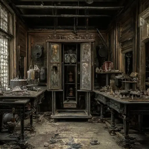 Phantasm-Seal Keep was an architectural statement of visual capture: a massive, asymmetrical structure built of dark, heavy granite, characterized by numerous internal darkrooms and light wells designed to control and stabilize light exposure. Its name suggested a blend of illusory image/ghost and a binding, final lock. The house stood on a remote, exposed hill, giving it an isolated, almost legendary presence. Upon entering the main studio, the air was immediately thick, cool, and carried a potent, mineral scent of aged brass, glass dust, and a sharp, metallic aroma. The floors were covered in heavy, smooth tiles, now slick with dust and dried chemical residue, amplifying every faint sound into an unsettling echo. The silence here was not merely quiet; it was an intense, visual stillness, the profound hush that enforces the memory of a face perfectly captured, waiting for the final, unassailable chemical reaction. This abandoned Victorian house was a giant, sealed photographic plate, designed to achieve and hold a state of absolute, unchangeable, fixed identity.
