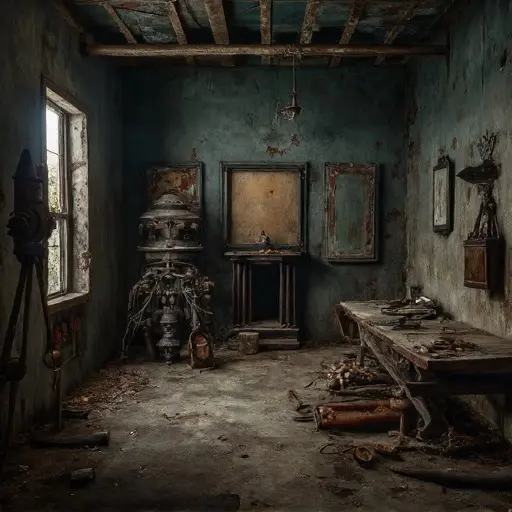 Epistēmē-Rivet Keep was an architectural statement of total intellect: a massive, symmetrical structure built of pale, smooth granite, characterized by numerous internal chambers designed to eliminate all ambiguity, contingency, and subjective interpretation for concentrated contemplation of Perfect Knowledge. Its name suggested a blend of knowledge/understanding/science (Epistēmē) and a heavy metallic fastener/stabilizer (Rivet). The house stood on a remote, high, isolated mesa, giving it an atmosphere of complete intellectual detachment, perpetually dedicated to the singular pursuit of Foundational Omniscience. Upon entering the main epistemology studio, the air was immediately thick, cool, and carried a potent, mineral scent of aged slate, dried ink, and a sharp, metallic tang of brass. The floors were covered in heavy, smooth tiles, now slick with dust and grinding residue, amplifying every faint sound into an unsettling echo. The silence here was not merely quiet; it was an intense, cognitive stillness, the profound hush that enforces the memory of a truth perfectly assimilated, waiting for the final, unassailable statement of complete knowledge. This abandoned Victorian house was a giant, sealed library of certainty, designed to achieve and hold a state of absolute, unchangeable, fixed understanding.