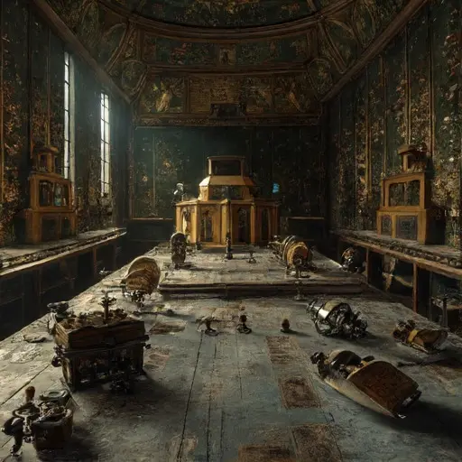 Lumen-Umbra Keep was an architectural statement of visual fixation: a massive, asymmetrical structure built of dark, heavy granite, characterized by numerous internal chambers designed to manipulate and eliminate all ambient light, color, and visual distortion. Its name suggested a blend of light (Lumen) and shadow (Umbra). The house stood on a remote, exposed plateau, giving it an isolated, almost blindingly bright or perpetually dim appearance, dedicated to the singular pursuit of visual truth. Upon entering the main optics lab, the air was immediately thick, cool, and carried a potent, almost dusty scent of aged wood, fine silica dust, and a sharp, metallic tang of brass. The floors were covered in heavy, smooth tiles, now slick with dust and grinding residue, amplifying every faint sound into an unsettling echo. The silence here was not merely quiet; it was an intense, visual stillness, the profound hush that enforces the memory of a light ray perfectly controlled, waiting for the final, unassailable clarity. This abandoned Victorian house was a giant, sealed camera, designed to achieve and hold a state of absolute, unchangeable, fixed visibility.
