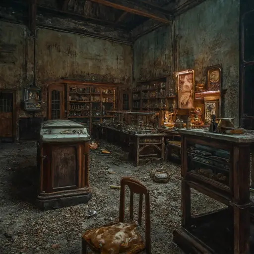 Memento-Cairn Keep was an architectural statement of permanent memory: a massive, asymmetrical structure built of dark, heavy granite, characterized by numerous internal chambers designed to stabilize organic material and isolate personal artifacts. Its name suggested a blend of memory/recollection and a stack of stones marking a grave or landmark. The house stood on a remote, exposed hill, giving it an isolated, ceremonial atmosphere. Upon entering the main preservation vault, the air was immediately thick, cool, and carried a potent, almost dusty scent of aged wood, dried chemicals, and a sharp, metallic tang. The floors were covered in heavy, smooth tiles, now slick with dust and dried residue, amplifying every faint sound into an unsettling echo. The silence here was not merely quiet; it was an intense, mnemonic stillness, the profound hush that enforces the memory of a life perfectly recorded, waiting for the final, unassailable tribute. This abandoned Victorian house was a giant, sealed monument, designed to achieve and hold a state of absolute, unchangeable, personal remembrance.