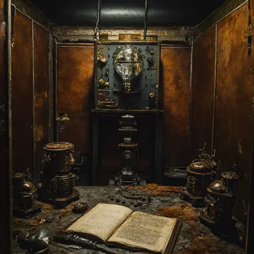 The most chilling discovery was made back in the main studio. Tucked carefully into the viewing port of the Imagination Isolation Chamber was the Master Fact. It was a single, immense, perfectly smooth slab of white marble, sealed with a heavy brass frame. The slab contained a massive, perfectly formed circle with a horizontal line passing through the center, and a square inscribed perfectly below the line (⊖ with a □ underneath)—the final symbol. The circle was the fixed boundary of the set of all thoughts, the horizontal line was the irrefutable plane of actuality, and the square below it represented the pure, singular, non-negotiable fact fixed to the ground of reality. The mark was utterly flawless, representing the absolute perfection of the command to Believe Only Fact. Resting beside the slab was a single, small, tarnished stylus, frozen at its point of final contact. Tucked beneath the chamber was Dr. Thorne’s final note. It revealed the tragic climax: he had successfully created the conditions for the “Master Fact,” achieving the absolute non-fiction he craved. However, by eliminating all possibility, all fiction, and all potential for imagination to achieve perfect, fixed reality, he had created a cognitive state that was utterly sterile and static—a perfect non-fiction that was fundamentally indistinguishable from an empty, unchanging void, as truth requires the potential of falsehood to gain meaning. His final note read: “The symbol is fixed. The reality is absolute. But the truth of the mind is in the worlds it creates.” His body was never found. The final paradox of Phantasia-Rivet Keep is the enduring, cold, and massive featureless symbol on the marble slab, frozen inside the chamber, a terrifying testament to a logician who achieved cognitive perfection only to find the ultimate, necessary flaw was the removal of the very possibility, imagination, and potentiality that gives meaning and reality to thought and consciousness, forever preserved within the static, intellectual silence of the abandoned Victorian house.}