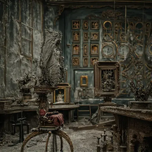 Gaze-Cradle Hall was the fortified residence and elaborate studio of Master Photographer Alistair Finch, a brilliant but pathologically obsessive portrait artist and pioneer in early photography of the late 19th century. His professional life demanded the precise control of light, the flawless formulation of chemical developers, and the pursuit of absolute visual fidelity—an image without blur, distortion, or deception. Personally, Master Finch was tormented by a crippling fear of temporal erasure and a profound desire to make the fleeting, vulnerable human form permanent and immune to the decay of memory. He saw the Hall as his ultimate darkroom: a space where he could finally capture a single, perfect, unaging portrait that would visually encode the meaning of eternal life.
