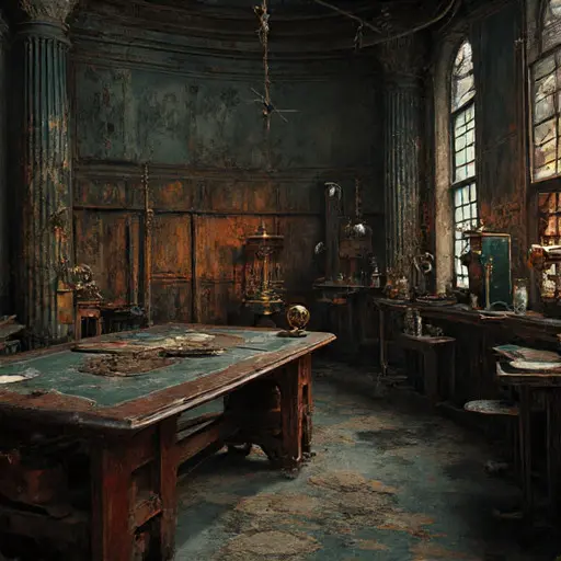Leitourgía-Cessation Keep was an architectural statement of anti-society: a massive, symmetrical structure built of pale, smooth granite, characterized by numerous internal chambers designed to eliminate all subjective responsibility, collective spirit, and public duty for concentrated contemplation of Apathy. Its name suggested a blend of public service/duty/liturgy (Leitourgía) and a complete stopping/ending (Cessation). The house stood on a remote, exposed plateau, giving it an isolated, almost hermit-like presence, perpetually dedicated to the singular pursuit of Absolute Non-Participation. Upon entering the main political lab, the air was immediately thick, cool, and carried a potent, mineral scent of aged metal, fine dust, and a sharp, metallic tang of brass. The floors were covered in heavy, smooth tiles, now slick with dust and grinding residue, amplifying every faint sound into an unsettling echo. The silence here was not merely quiet; it was an intense, civic stillness, the profound hush that enforces the memory of a society perfectly ignored, waiting for the final, unassailable statement of non-responsibility. This abandoned Victorian house was a giant, sealed citizenry, designed to achieve and hold a state of absolute, unchangeable, fixed individual autonomy.