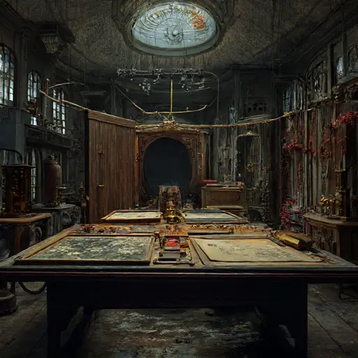 Télos-Aether Keep was an architectural statement of anti-purpose: a massive, symmetrical structure built of pale, smooth granite, characterized by numerous internal chambers designed to eliminate all subjective goal, motivation, and future orientation for concentrated contemplation of The Void of Meaning. Its name suggested a blend of end/purpose/goal (Télos) and the classical element of pure, upper air/void (Aether). The house stood on a remote, exposed plateau, giving it an isolated, almost existential presence, perpetually dedicated to the singular pursuit of Absolute Non-Goal Orientation. Upon entering the main teleology studio, the air was immediately thick, cool, and carried a potent, mineral scent of aged metal, fine dust, and a sharp, metallic tang of brass. The floors were covered in heavy, smooth tiles, now slick with dust and grinding residue, amplifying every faint sound into an unsettling echo. The silence here was not merely quiet; it was an intense, teleological stillness, the profound hush that enforces the memory of a potential outcome perfectly canceled, waiting for the final, unassailable statement of non-meaning. This abandoned Victorian house was a giant, sealed destiny, designed to achieve and hold a state of absolute, unchangeable, fixed lack of purpose.