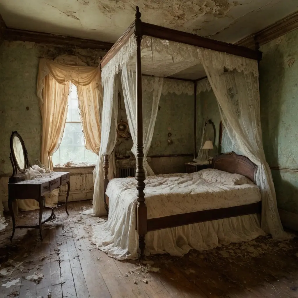 Among the mansion’s many wonders are the forgotten rooms, untouched since the last resident vanished. The master bedroom, though draped in decay, still exudes a quiet dignity. A cracked perfume bottle rests beside a faded photograph on the vanity—symbols of a life long gone.