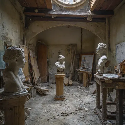 Sinclair’s decline arose from worsening rheumatoid arthritis, making delicate sculpting unbearable. Evidence is abundant: cracked statues abandoned mid-carve, sketches of faces half-annotated, and chisels left balanced precariously atop marble blocks. His final journal entries reveal fatigue and frustration, yet no explanation for disappearance or final departure exists. Friends found the atelier empty, tools scattered, and personal items untouched. Letters to patrons were unsent; payment records unfinished. A discarded leather apron, stained and frayed, hangs from a peg, a quiet witness to his retreat. The mystery rests solely in incomplete work and the atmosphere of unresolved creativity.