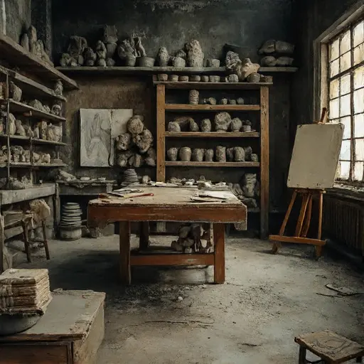 The atelier was the heart of Sinclair House’s east wing, where every surface reflected artistic obsession. Dust settled over plaster fragments, sketches pinned to walls, and tools left as if their owner had only stepped away briefly. The scent of old marble and resin lingered, an imprint of careful labor now halted.