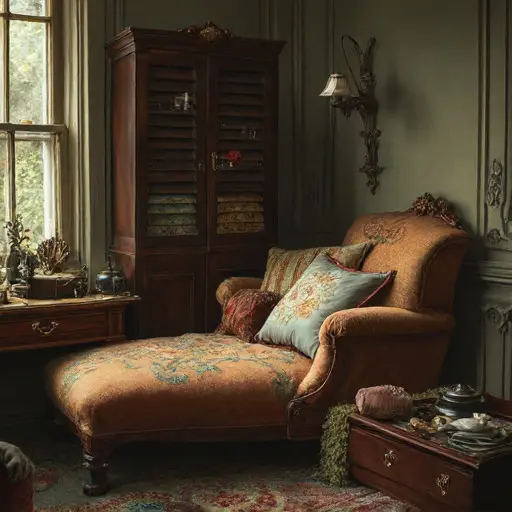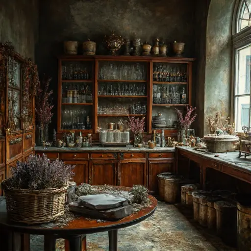 Clémence Adèle Delorme, perfumer, born 1878 in Marseille, shaped aromas with meticulous devotion. A ceramic palette painted with Provencal motifs hints at her origins; a lace-edged apron hangs beside brass funnels arranged by decreasing size. Notes pinned to a spice cupboard list her trials in delicate handwriting. Her brother, Étienne Delorme, once assisted her—his monogrammed handkerchief tucked behind a cache of orris root. Their routines intertwined: she blended at dawn, he strained tinctures at dusk, the house scented with layered intentions.