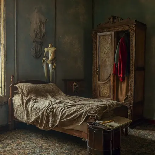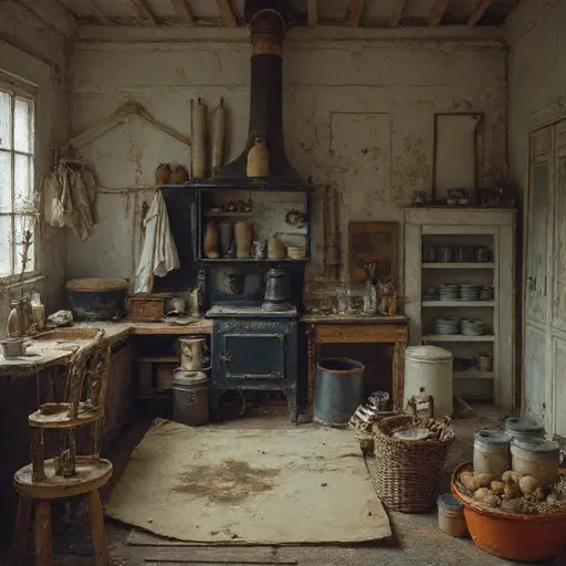 The house receives its abandonment quietly, patterns left unfinished, tools awaiting hands that will not return.