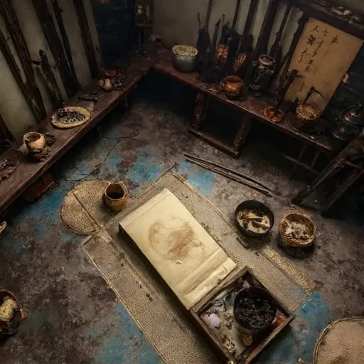 The house remains abandoned, scrolls, brushes, and inkstones awaiting hands that will not return, the quiet heavy with unfinished artistry and lost mastery.