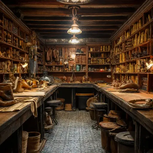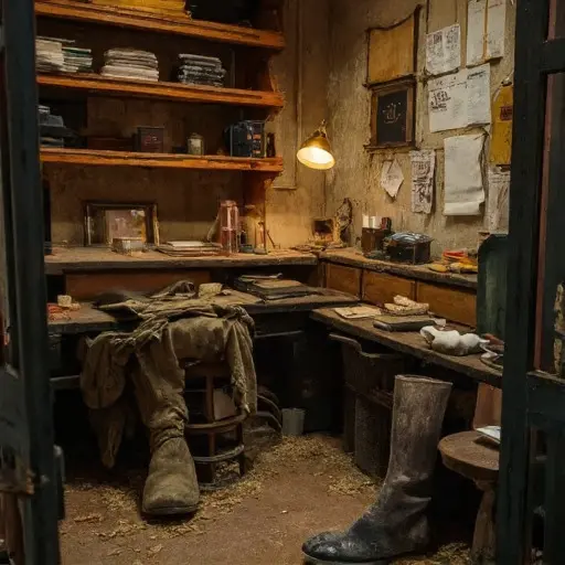 Waxed threads, evenly coiled, lie beside a brass compass for measuring arches. A crate of imported cork—light, precious—rests under the main table. One boot, exquisitely stitched across the vamp, waits for its mate. A narrow sheet of notes lists commissions, the final line half-scored.