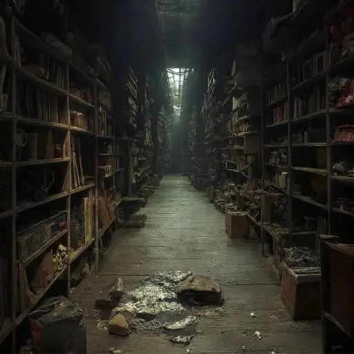 Pinned beneath a torn length of ribbon is a scrap reading: “She blames me for the collapse.” Another fragment, ink uneven from a hastily dipped nib, adds: “Recompense demanded—beyond my means.” The sentence tails thinly into the paper. Even the feather shears, usually well-sharpened, bear a notch that misaligned their cut.