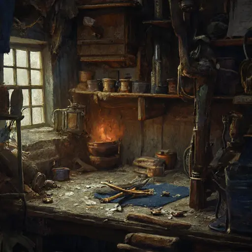 This millinery loft holds the legacy of Eleanor Anne Hargreaves, milliner and decorative hatmaker, born 1879 just outside Manchester. Raised among modest textile workers, she trained under a traveling hatmaker who taught contour, gentle steaming, and the balance between ornament and structure. A tiny button charm from her sister, Beatrice Hargreaves, dangles from a ribbon spool near the windowless eaves.