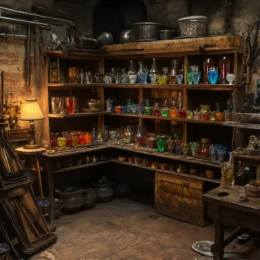 Clues stitched through the furnished spaces reveal Václav Ondřej Havel, born 1873 in Jablonec, shaped by Bohemian workshops famed for carved and tinted glass. In the Crucible Corner, clay pots hold remnants of cobalt and manganese, each labeled in Czech script. Blowpipes lean in neat rows along an iron trough, their grips wrapped in scorched cloth. His temperament emerges in the careful parade of samples on the windowsill—cut-glass medallions etched with starbursts, each edge polished with reverence.