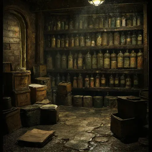 The lantern cellar holds a low, resinous hush; warmth dwindles along the floor where lantern soot smudges old stone. Nothing announces calamity, yet something softened in the room’s careful rhythm, as though a practiced gesture slipped and the silence kept it.