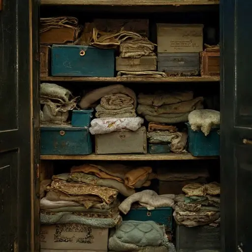 Behind a toy chest lies a returned dispatch slip noting “timing discrepancies.” A mispunched tape segment sits on the desk, its dots blurred by hasty correction. The nursery curtains appear faintly skewed, as if drawn aside during pacing. A child’s block—carved with the letter “S”—rests atop a bundle of rewound wire, placed with a tenderness that complicates the room’s stillness.