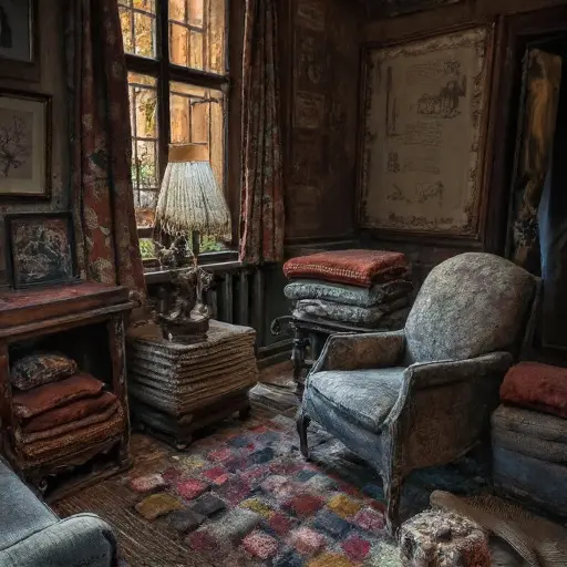 The room belonged to Edmund Hargrove, master weaver, born 1874 in Manchester, trained in local textile schools and through apprenticeship in family workshops. His profession defined every surface: threads sorted by hue, spools lined carefully, scissors and needles placed precisely. A folded letter tucked among pattern sheets references his sister, Margaret Hargrove, instructing her to prepare materials for students. Edmund’s temperament was meticulous and disciplined; ambition expressed through craftsmanship rather than commercial success. Each day followed a precise rhythm of threading, weaving, and finishing, repetition sustaining both skill and focus, every movement deliberate and exact.