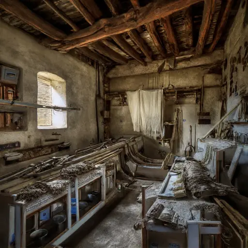 The room belonged to Isabel Hernández, professional weaver (b. 1875, Seville), trained in artisanal workshops supplying regional estates and urban boutiques. Her handwriting appears on pattern sheets and order forms, restrained and precise. A note references her brother, Miguel Hernández, who assisted with supply runs. Her daily rhythm followed measured steps: thread preparation, weaving, pattern recording, and final inspection, temperament exacting and methodical, ambition to master intricate designs evident in every careful stitch.
