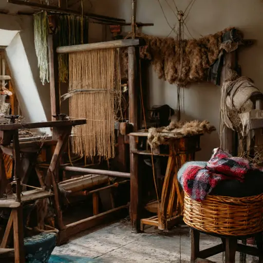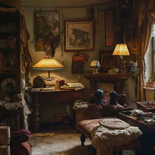 The house remembers Fiona Màiri MacLeod, born 1874 in Inverness-shire, a weaver shaped by Highlands cottage traditions. In the Front Workroom, tartan samples line the mantle, their dyes echoing moss greens and muted reds. A spindle wrapped with fine twist rests beside a pot of woad paste; the faint scent reveals her early-morning habit of preparing dyes before breakfast. She was orderly but unhurried—skeins hung evenly on drying frames, pattern cards stacked with deliberate care. Her quiet temperament resonates in every balanced thread tension and in the precisely folded creels stored under the settee in the Parlor Corner.