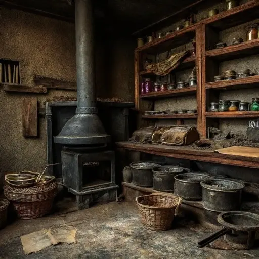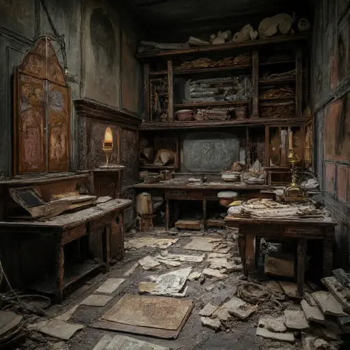 The house remains abandoned, its tools, inks, and manuscripts suspended in quiet anticipation, preserving the halted rhythm of calligraphy that will never resume, a silent testament to careful labor left unfinished.