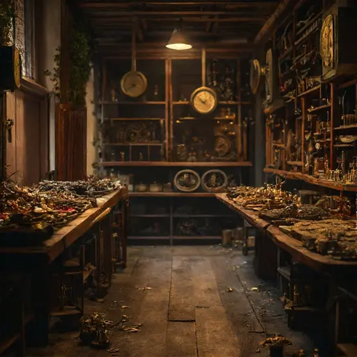 The clockmaker’s workshop settles into brass-scented quiet, unfinished movements resting in uncertain poise.