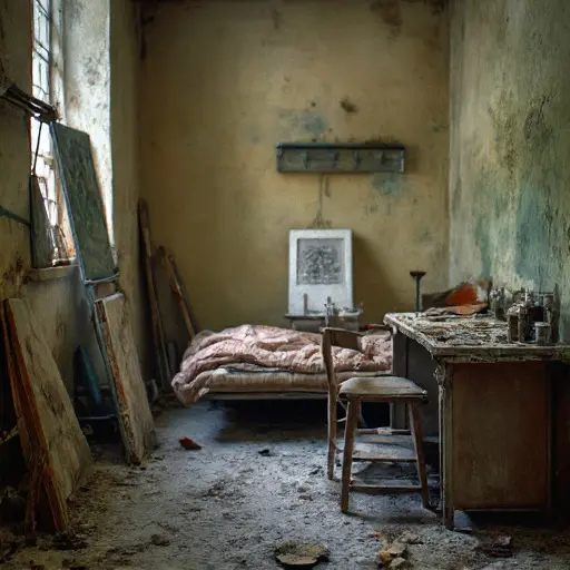 The house remains abandoned, its pigments, brushes, and palette a quiet testament to interrupted painting and unresolved devotion.