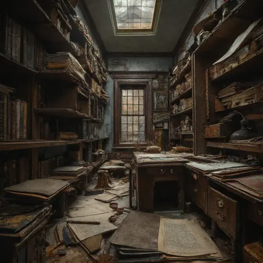 The house remains abandoned, its presses, paper, and signature stacks held in careful suspension, a record of patience undone and labor left unfinished, preserved without resolution.