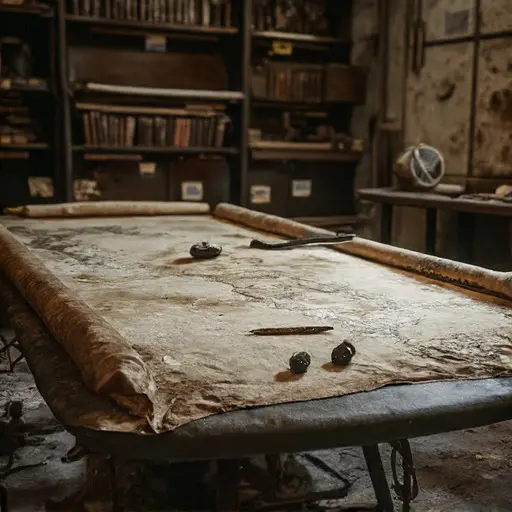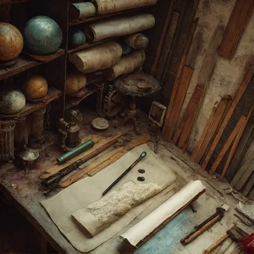 The Cartography Room hums with suspended calculation. Here, the scroll recorded every river bend, coastline, and elevation contour. Tools remain mid-use, inkpots half-filled, and maps half-drafted.