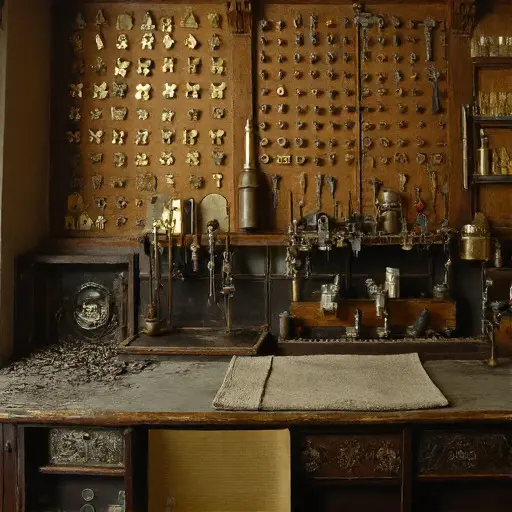 Everything seems paused in mid-intention, awaiting the next mild tap of a file. Yet something fragile inhabits the quiet—a subtle imbalance near the vise, a misaligned stack of blanks—suggesting an unspoken hesitation that drifted through these rooms and never dispersed.