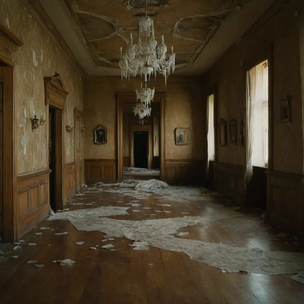 The Grand Parlor once echoed with laughter and music. Now, only the creaking floorboards play a tune. Portraits on the wall seem to watch every movement, their painted eyes dulled but not lifeless. The cracked mirror over the fireplace reflects fragments of the past—ball gowns swirling, glasses clinking, and ghosts of joy that refuse to fade.