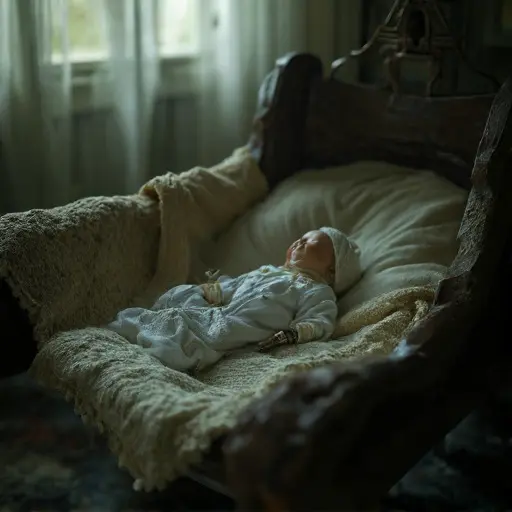 The master bedroom, which Lady Clara had converted into Elara’s nursery after the death, held the final, heartbreaking discovery. The entire room was cold and sterile. The centerpiece, the wooden cradle, was stripped bare. Tucked beneath the thin, dusty mattress was a single, intricately crafted porcelain doll, perfectly molded to resemble an infant, dressed in a faded white christening gown. Tucked beneath the doll was Lady Clara’s final, personal diary. It revealed the tragic climax: she had completed her great work, creating the perfect, unchanging environment and the perfect, unchanging, non-decaying replica of her child. Her final entry detailed her intention to join the only thing that could achieve true stasis—the unchanging stone of the house. The grave comfort of Lullaby-Stone Manor is the profound stillness of that final, cold nursery, a monument to a mother who believed the only way to hold onto a moment of life was to meticulously preserve its absence within the heavy, silent stone of her abandoned Victorian house.
