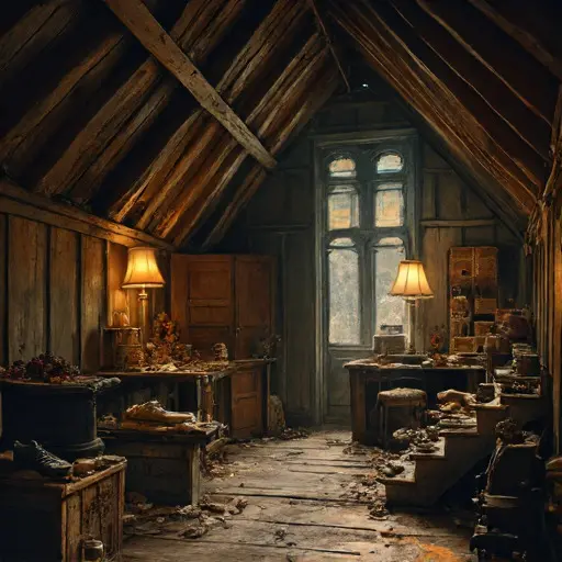 In the Vibration-Logging Room, resonance rods lie grouped by density, wave-mapping parchment pinned beneath tarnished weights, tuning forks arranged by interval, and glass calibration tubes set in careful rows. Luretta’s domestic order remains visible in folded linens, jars labeled in tidy handwriting, and the mending she kept sorted by urgency. Eryn’s traces linger in small fragments: a wooden tuning fork carved for her by Thalen, chalk ripple-lines drawn across a slate, and a folded drawing titled “House That Hums.”