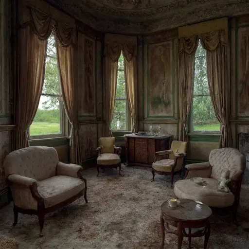 The house keeps its own counsel now, its rooms settled into abandonment, gears unwound and unanswered.