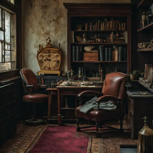 A faint sourness of machine oil lingers in the Study, though the lamps have not been trimmed in years. Somewhere beneath the drifts of paper lies a ledger, half-open as though its owner meant to return before the ink dried. The quiet suggests only halted routines, yet nothing here has been ransacked.
