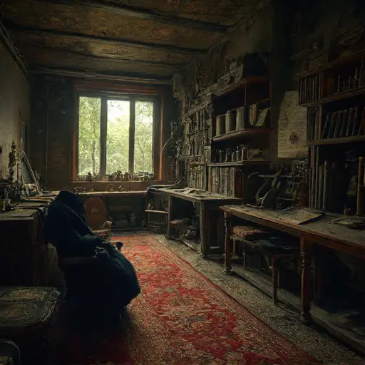 A faint sourness of machine oil lingers in the Study, though the lamps have not been trimmed in years. Somewhere beneath the drifts of paper lies a ledger, half-open as though its owner meant to return before the ink dried. The quiet suggests only halted routines, yet nothing here has been ransacked.
