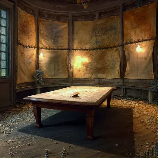 The “Map Room” is a misnomer; it contains no conventional geography. The vast space, however, is covered floor-to-ceiling with canvas charts and schematics—not of places, but of linguistic structures, numeric sequences, and branching logic trees. This room reveals the true focus of the abandoned Victorian house: the architecture of information.
