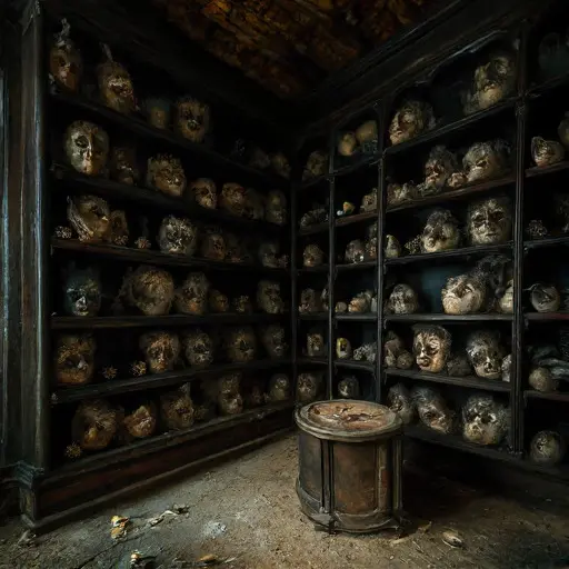Hidden off the main parlor is the “Masquerade Archive,” a small, dark room dedicated entirely to the elaborate masks worn by their guests. This chamber is a silent portrait gallery of absent faces. The focus keyword, abandoned Victorian house, is here a frame for dozens of frozen identities.
