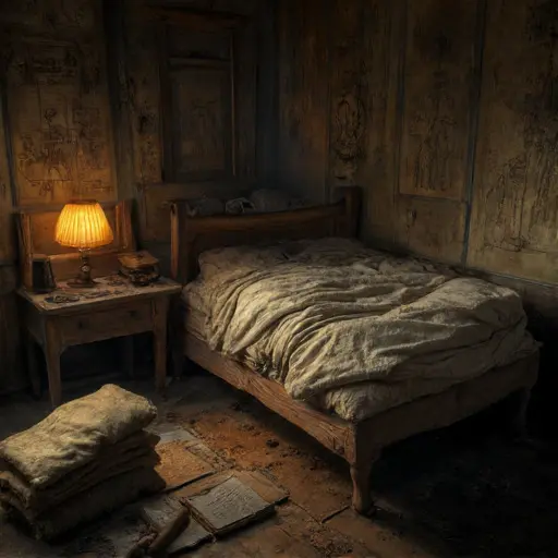 The room belonged to Étienne Dubois, professional engraver (b. 1870, Lyon), trained in fine arts academies and commissioned for illustrations and prints. His handwriting appears on sketches and client notes, exacting and restrained. A note references his apprentice, Madeleine Dubois, who cleaned plates and prepared inks. His daily schedule consisted of planning etching layouts, engraving designs, inking plates, and pressing prints meticulously. Temperament precise, ambition quiet, and devotion to detailed craft defined his life.