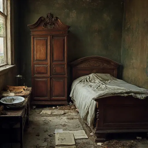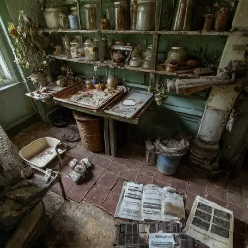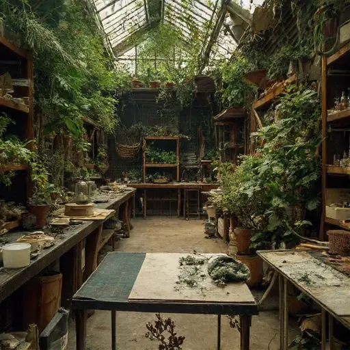 The house remains abandoned, tools and herbarium sheets frozen mid-creation, preserving the quiet persistence of botanical study interrupted, unresolved, and suspended in hushed neglect, a testament to meticulous science left unfinished.